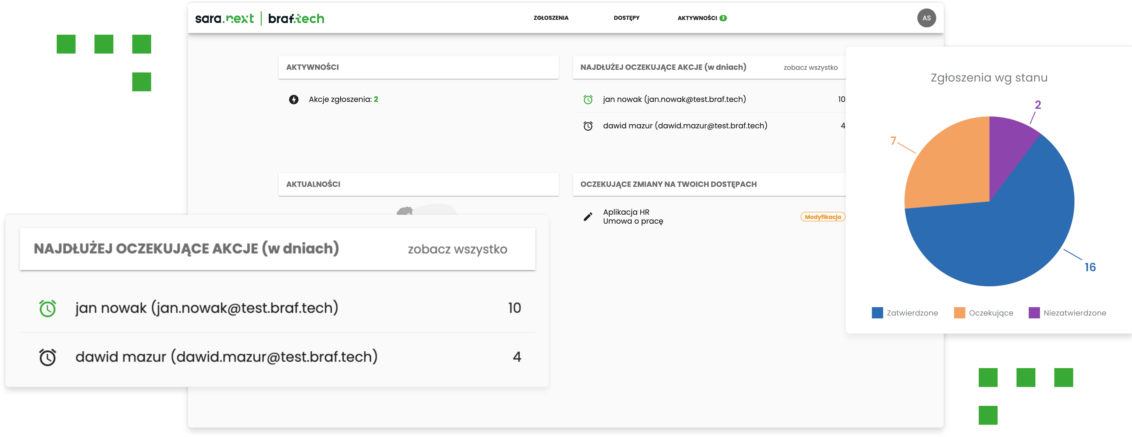 Zatwierdzaj wnioski o dostęp, przeglądaj raporty i reaguj na alerty — wszystko z jednego miejsca. Masz pełną widoczność i kontrolę nad tym, kto, kiedy i dlaczego ma dostęp.